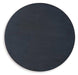 This small side table has a blue circular top and three light tan wooden legs. It's ideal as a bedside table or lamp table in your living areas, bringing casual elegance to your home.