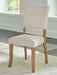 Serve up timeless style with this dining chair. Taking a curated approach to casual aesthetics, the frame is finished in an inviting light wood tone. For added flair and function, the chic neutral Next-Gen Nuvella™ fabric is stain-resistant so you can dine worry-free.