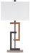 Dig cool, contemporary style? Behold this table lamp. Its thin metal base supports angular accent pieces, while a rectangle shade completes the geometric look. Place this lamp wherever the mood strikes for a modern look with an artistic twist.