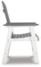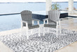 Pull up a chair on the back deck or poolside and gather around for good times. These two-tone outdoor dining chairs have sturdy legs in crisp white, with the arms, seat and back in a cool shade of gray. A slatted seat and back allow drainage to prevent rainwater buildup. Designed to withstand harsh weather, this comfortably casual outdoor duo is made with durable MEGA TUFF™ HDPE material that won't chip, rust or peel.
