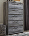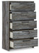 Beachy style and lots of storage go hand in hand with this chest. Its driftwood and surfer-inspired smoky finish creates a rustic look that's perfect for setting the scene of an island getaway. Five roomy drawers give you the space needed for stowing away clothes and more. Clean lines and modern handles provide an authentic look to be admired for years to come.