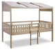 Here’s to a kid-friendly bed that blends in beautifully with modern farmhouse living. This lovely loft bed features a charming front porch railing effect, to help kids create a little home of their own. Coordinating under bed bookcases or rolling storage bins (sold separately) are the perfect accompaniment to this contemporary bedroom suite.