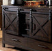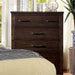 Bianca Dark Walnut Chest, 38"W X 16 3/4"D X 51 3/4"H, 147.5lbs. This transitional style bedroom chest takes the best of all interior designs by blending the classics with rugged rustic flair. Each is scaled to balance the rural details with a minimalistic approach that exemplifies down to earth sophistication. Th e solid wood pieces are topped with wood veneer, giving each piece a smooth and refined exterior. Felt-lined top drawers and sliding cabinet doors give the storage pieces extra appeal. Features: Transitional Style Felt-lined Top Drawers Solid Wood, Wood Veneer, Others Dark Walnut Finish