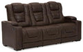 When it comes to style, you’ve got game. Rest assured, this power reclining sofa is sure to win you over with its ultra-cool looks and major league features. Showcasing all the bells and whistles, this designer reclining sofa is inspired by sports car interiors—with a fabulous faux leather accentuated with horizontal channel tufting. An advanced one-touch power control with an Easy View™ power headrest puts you in the driver’s seat. Dual cup holders and armrests with hidden storage take the form and function to another level, while a middle seat with drop-down table, cup holders and docking station cater to your every want and need.