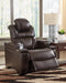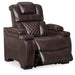 Your modern living room awaits with this power recliner. Complete with practical faux leather beautified with diamond lattice stitching, one-touch power control, adjustable headrest and a USB charging port, it makes finding the best seat in the house a breeze. Cup holders and armrest console storage keep drinks, snacks and remotes close by. Go ahead—treat yourself to a high-design home theater experience, priced to put you at ease.