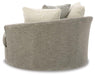 Easy on the eyes, this oversized swivel accent chair rounds out your seating options with ease. Its generous scale cradles you in comfort, while the swivel feature lets you go with the flow. A collection of coordinating accent pillows adds to the indulgence.
