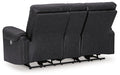 You don’t just want to recline. You want to recline in high design. This power reclining loveseat’s clean lines and supple faux leather are out to capture your heart with style and comfort. Easily tuck away remotes or gaming controllers and keep drinks close by with its handy console. This loveseat gives you the upscale look you want for less—simply take a seat, raise your legs and relax.
