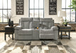Bring your snacks and beverages and plan for a night with your feet up. This double reclining loveseat is plush in all the right places, and will support you longer than you can binge watch your favorite TV show. The neutral upholstery is ready for a patterned throw blanket and some of your time. Hide the remote in the console and claim your spot on the Mitchiner.
