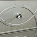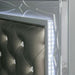 MANAR E.King Bed, 86 1/4"L X 79"W X 62 1/4"H, 187lbs. The glamor is in the details of this bedroom set from the Manar Collection. The headboard is upholstered in a faux leatherette, button-tufted with crystal-acrylic buttons, and embedded with a LED light, creating a sparkling aesthetic. The matching pieces feature a decorative, circular pattern, only adding to opulence of the design. Your bedroom will be a place to pamper yourself with this set.