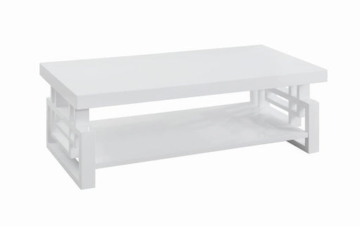 Pala Rectangular Coffee Table with Sled Base White High Gloss and Natural