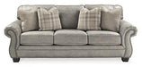 Seamlessly merging classic elements with modern trends, this sofa invites you to bring home the best of then and now. Wrapped in a fabulous steel gray upholstery with sumptuous suede-like feel, this easy-elegant sofa is dressed to impress with updated roll arm styling and tailored touches including nailhead trim and window pane stitching. What you can’t see is every bit as impressive. Reversible seat cushions crafted with our highest quality coils provide a bit of bounce and plenty of comfort and support.