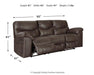 Rock the cool look of leather minus the hefty price tag with this reclining sofa. Rich with tonal variation, the indulgently soft upholstery sure looks like the real thing. And talk about indulgent comfort. Double stuffed armrests and sumptuous cushions cradle and support in all the right places. Distinctive scooped stitching enhances this reclining sofa’s contemporary flair.