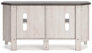 With its minimalist charm, this TV stand is right in tune with your relaxed approach to high style. Beautifully shaped to nestle into any corner, i...