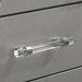 MADDIE Cal.King Bed, Silver, 94 7/8"L X 86 5/8"W X 70"H, 330lbs. Create a room with this bedroom set from the Maddie Collection. The curved headboard is padded and upholstered in a horizontally-tufted fabric, emphasizing the silver finish. The night stand, dresser, and chest feature acrylic legs, crystal accents, and a beveled mirror with a LED light creates a glamorous aesthetic. Give into your glitzy side with this opulent set.