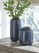 Sleek and sultry navy blue captures your gaze on this 2-piece vase set. Sand dollar-inspired markings elevate the silhouette with contemporary flair. You’ll love its quality craftsmanship, making it durable enough for indoor and outdoor use.