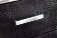 Rest easy. The luxurious look you’ve been dreaming of is yours for the taking—at a price sure to put you at ease. This striking storage bed brings a sense of old Hollywood with a contemporary flair. A deep, dark finish, faceted chrome-tone accents and LED lighting exude Hollywood-chic style to the max. Padded windowpane-stitching on the sleek, black upholstery infuses a sumptuous look that’s upscale and indulgent, and utterly on trend. A wireless remote allows you to control the color and brightness to suit the mood.