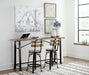 Delight in the effortless two-tone look of this dining package. Dark iron-tone metal and distressed brown wood pair for a rustic look with modern sensibility. This charming set is great for small spaces, easily tucking against a wall or the back of a sofa.