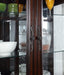 The most festive occasions deserve the most stylish furniture! Finished in brown cherry, the set's rich details include decorative faux wood carvings on the legs reminiscent of baroque styling. The dramatic buffet and hutch has tempered glass doors and multiple shelves and drawers to store china and silverware.